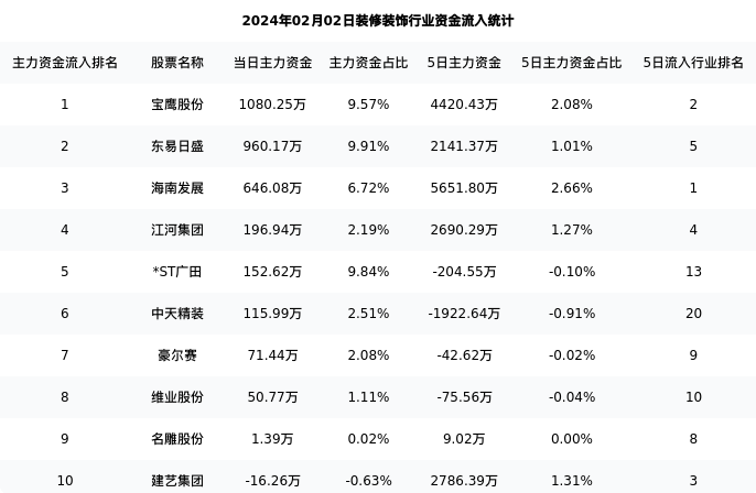 从主力资金流向来看,装修装饰行业今日主力资金流入2.50亿元,在所有申万二级行业中排名:4/131。