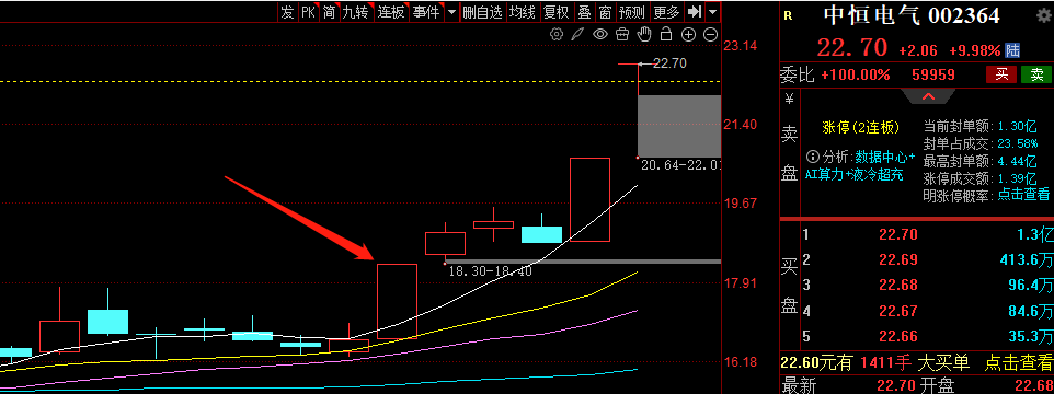 像中恒电气这种趋势板的股票,我们在首板的时候重点点评过,一是他去年打出的辨识度很高,二是他最近开始有资金关注,所以短线就算是没有连板也不会影响他后期的上涨空间。