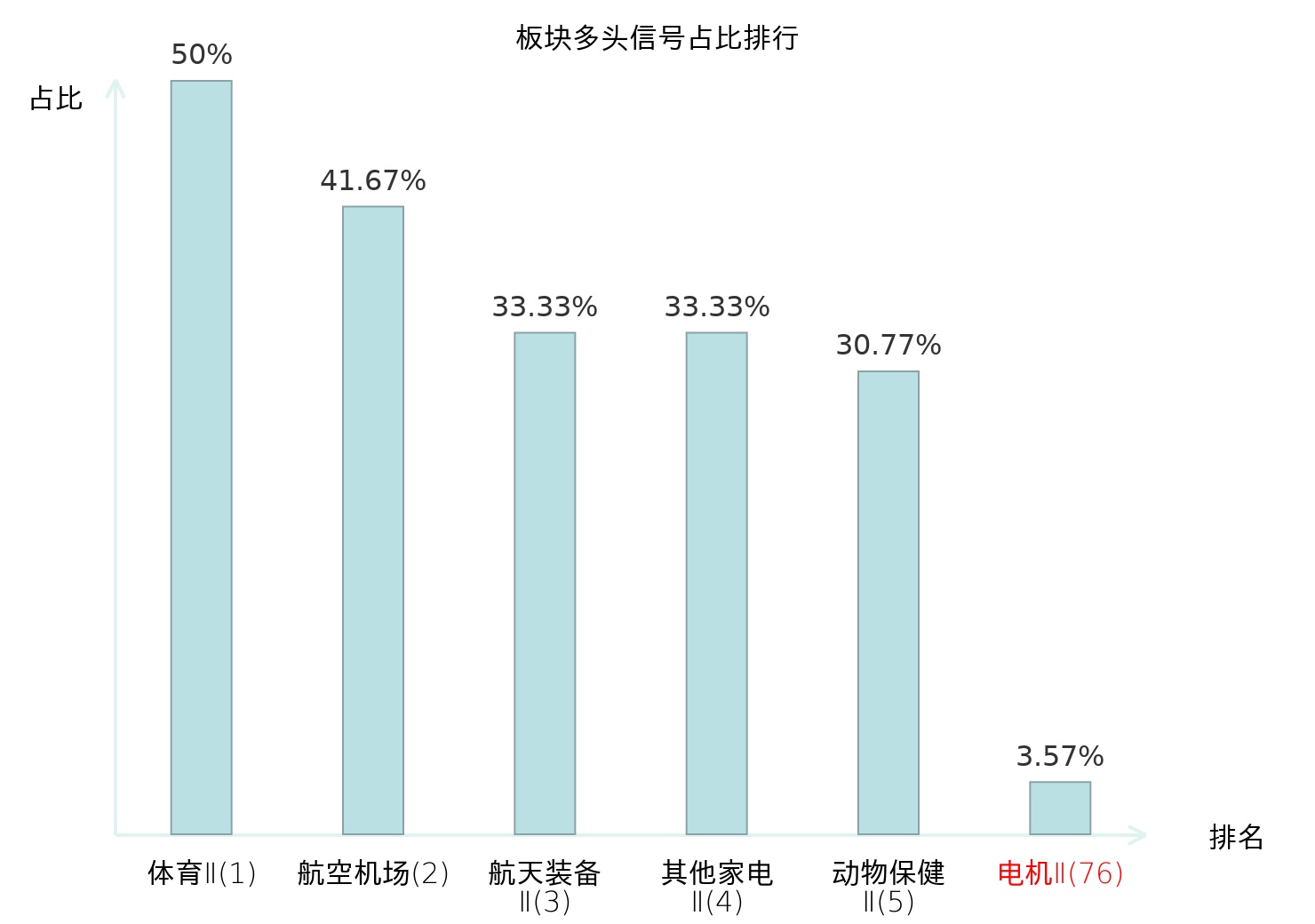 全市场所有行业板块中主力多头信号占比排名中,体育Ⅱ板块位居第一。体育Ⅱ板块名次提升最快,较昨日上升130位。