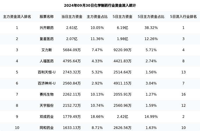 易明医药今日净流出942.93万,主力占比9.50%,在行业内排名:93/150;5日净流出1619.69万,主力占比1.00%,在行业内排名:115/150。