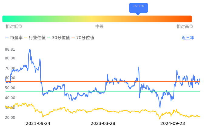 高争民爆当前市盈率PETTM为58.64,在所属的化学制品中,市盈率PETTM排105名。前5名分别为同德化工PETTM4.26、梅花生物PETTM7.77、星湖科技PETTM8.45、嘉化能源PETTM8.96、建业股份PETTM9.00。从PETTM估值走势数据来看,高争民爆当前市盈率PETTM为58.64,超过近3年76.00%的历史数据。