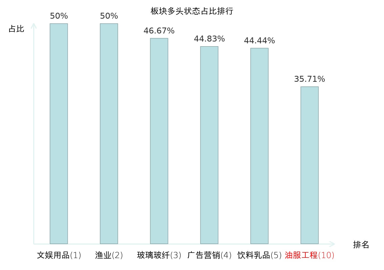 从主力宝信号数据分析,贝肯能源所属的油服工程板块中共有5只股票处于主力多头状态,主力多头状态占比在全行业中排名第10位,较昨日下降1位。较高的排名表明主力对油服工程板块整体看多意愿较强,而此次排名下降可能反映了主力对该板块态度的微妙变化。全市场所有行业板块中,主力多头状态占比排名中,文娱用品板块位居第一。饮料乳品板块名次提升最快,较昨日上升59位。这些变动揭示了不同行业间主力资金动向的趋势,为投资者提供了市场情绪和潜在投资机会的重要线索。