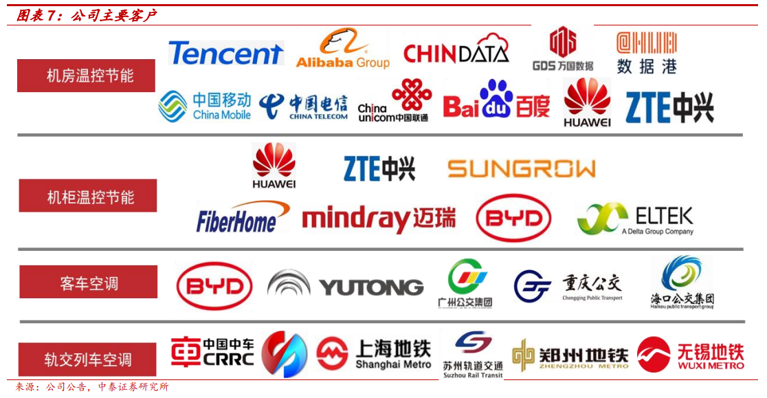 公司已为包括腾讯、阿里巴巴、秦淮数据、万国数据、数据港、中国移动、中国电信、中国联通等大型数据中心业主、IDC运营商、互联网公司的数据中心提供机房温控节能产品与服务。