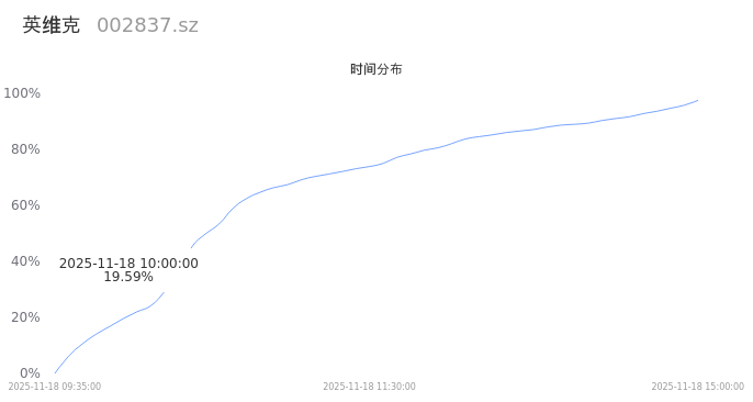 002837英维克2025年11月18日成交62.22万手,成交金额46.53亿,相较昨日缩量13.50万手,换手率7.32%,成交清淡。