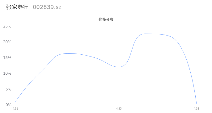 然后我们来看下当日成交的价格分布。经过分析发现,该股票当日成交价格波动低于10个最小波动价位,由于可以参考的样本量非常少,价格分布分析的结果不具有指导意义,下图仅供参考。