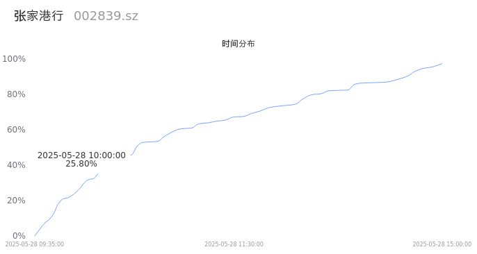 002839张家港行2025年05月28日成交31.04万手,成交金额1.35亿,相较昨日缩量6.89万手,换手率1.27%,成交清淡。