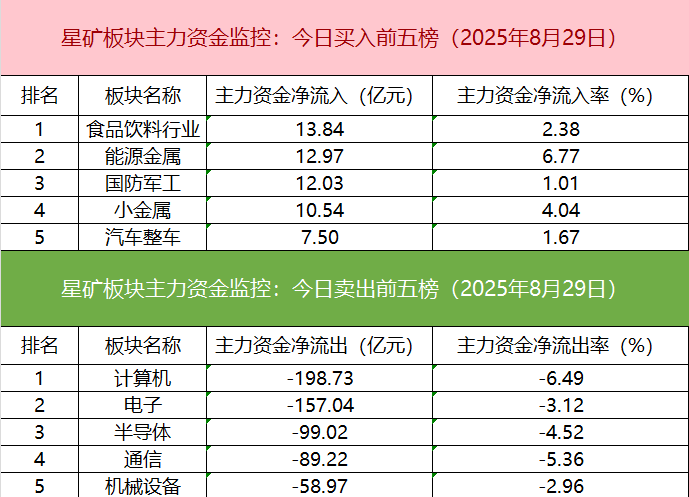 从主力板块资金监控数据来看,食品饮料板块主力资金净流入居首。