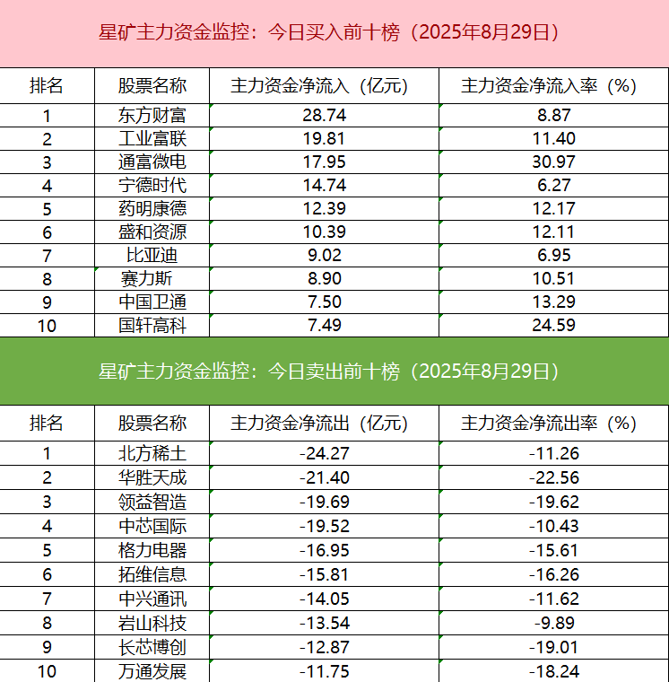 主力资金流出前十的个股所属板块较为杂乱,北方稀土净流出居首。