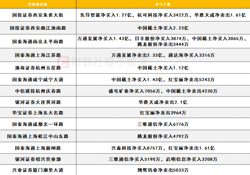 一线游资活有所下降,中国稀土获三家一线游资合计买入4.78亿,该股昨日获四家一线游资席位净买入6.56亿;华胜天成遭两家一线游资席位合计卖出3.71亿;万通发展遭国泰海通上海江苏路营业部净卖出2.23亿。