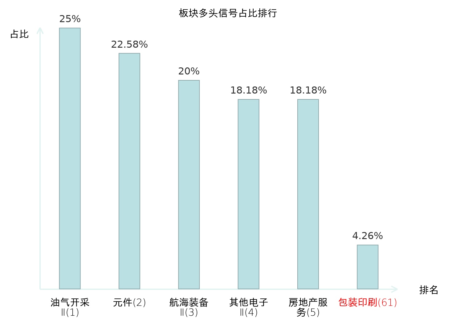 全市场所有行业板块中主力多头信号占比排名中,油气开采Ⅱ板块位居第一。油气开采Ⅱ板块名次提升最快,较昨日上升125位。
