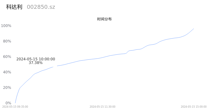 002850科达利2024年05月15日成交2.35万手,成交金额2.26亿元,相较昨日放量6834手,换手率1.22%,成交清淡。