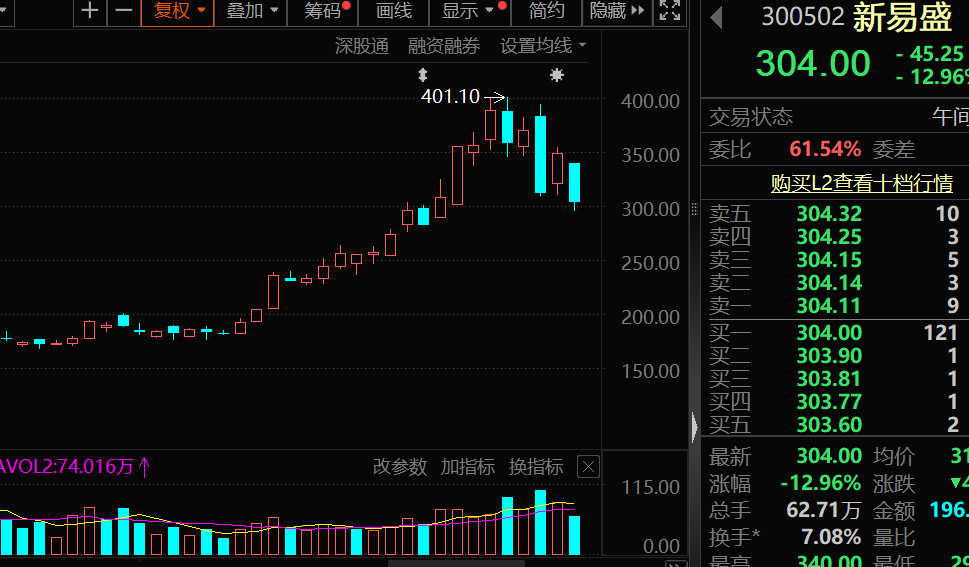 新易盛早盘一度下跌15.49%,午盘跌12.96%,成交额达到196.33亿元。数据显示,近期新易盛持续获得融资净买入,已连续四周净买入金额超过10亿元,近四周累计净买入金额达到76.09亿元。
