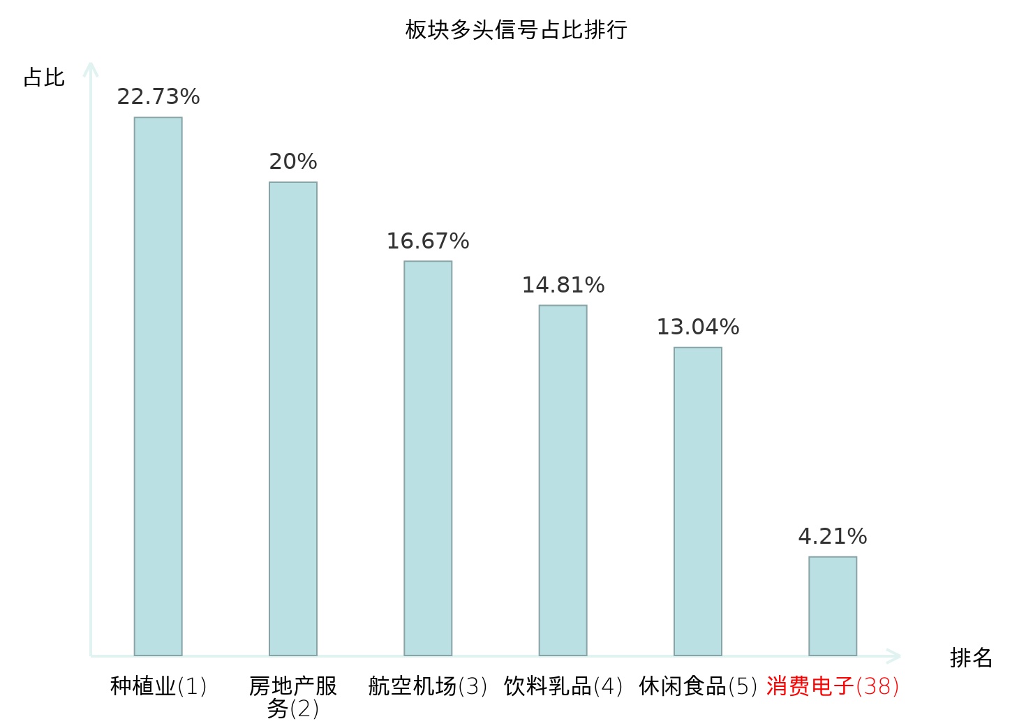 全市场所有行业板块中主力多头信号占比排名中,种植业板块位居第一。厨卫电器板块名次提升最快,较昨日上升109位。