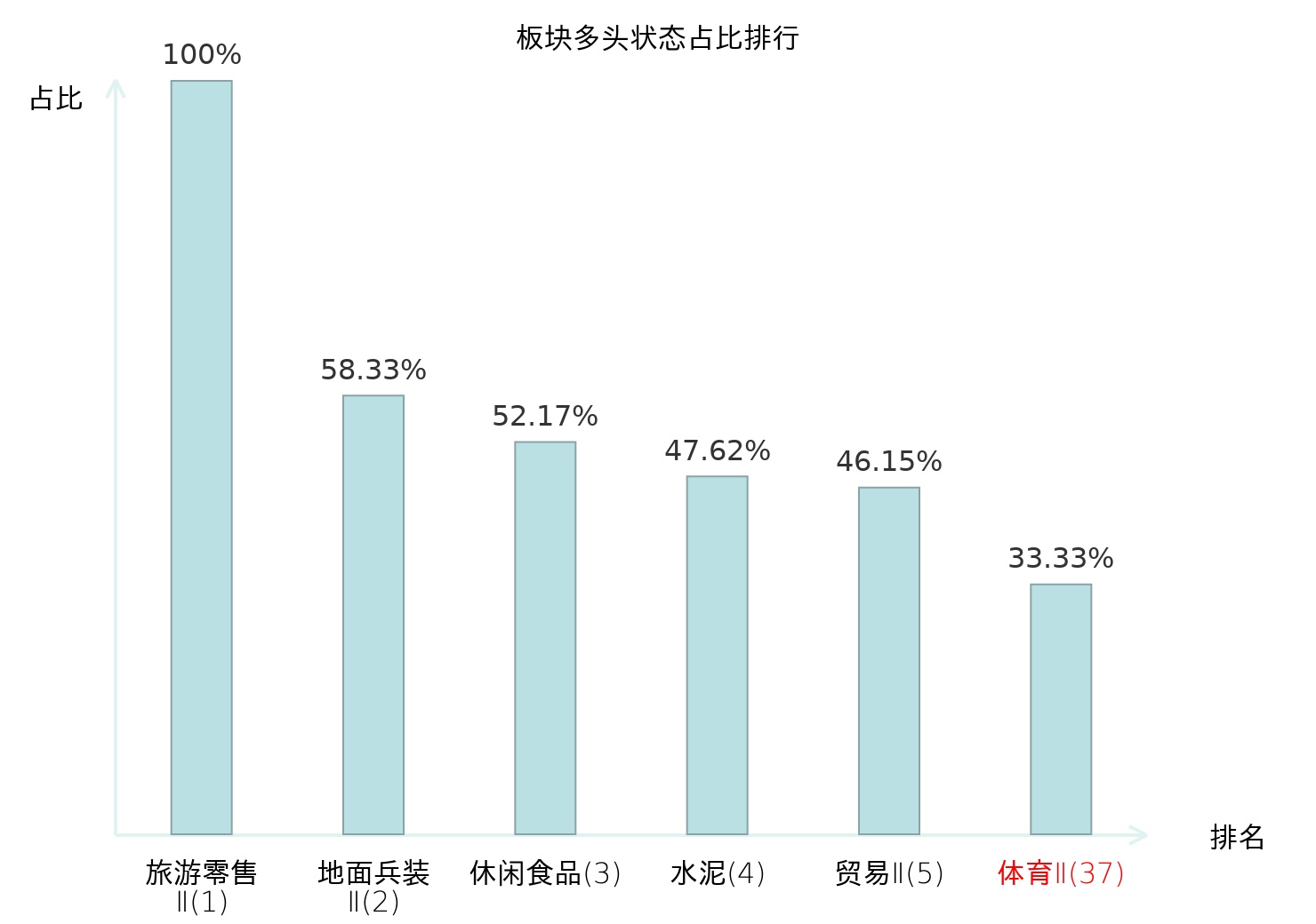 从主力宝信号数据分析,力盛体育所属的体育Ⅱ板块中共有1只股票处于主力多头状态,主力多头状态占比在全行业中排名第37位,较昨日上升2位。排名的提高表明主力对于该板块整体看多意愿较强,这为投资者提供了关于主力资金动向的重要参考。全市场所有行业板块中,旅游零售Ⅱ板块的主力多头状态占比位居第一;焦炭Ⅱ板块名次提升最快,较昨日上升82位。这些变动反映了主力资金在不同行业间的偏好调整,为投资者提供了关于市场趋势的重要线索。