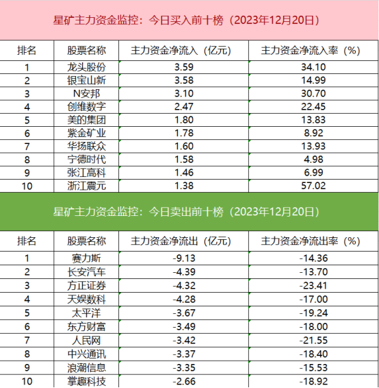 主力资金流出前十的个股所属板块较为杂乱,赛力斯净流出居首。