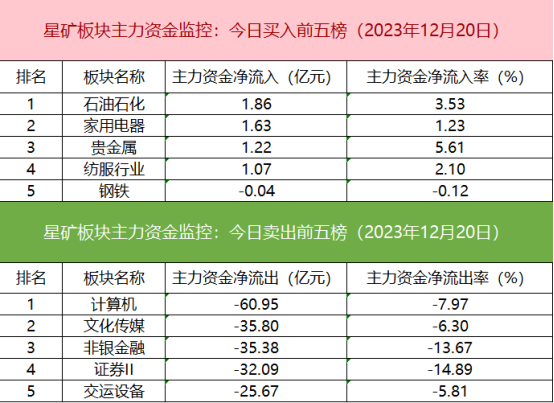 板块资金流出方面,计算机板块主力资金净流出居首。