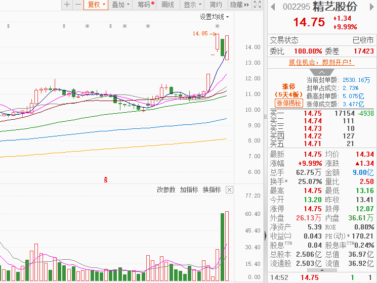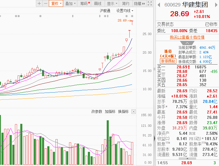 市场情绪:今日共52股涨停,连板股总数10只,23股封板未遂,封板率为69%(不含ST股、退市股)。焦点股方面,蓝丰生化晋级7连板,低价叠加芯片概念的山子高科13天8板,上海微电子概念股华建集团14天8板,有色金属板块全天强势,其中精艺股份5天4板、博迁新材2连板。