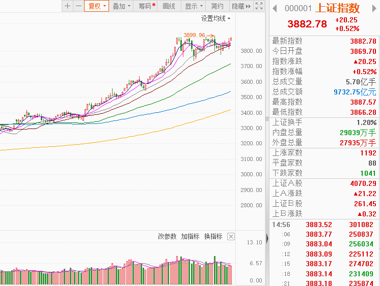 大盘分析及后市展望:A股三大指数集体高开后呈现震荡格局,沪指表现相对强势且稳步运行,深成指与创业板指虽在盘中双双刷新年内新高后小幅冲高回落,但整体交投氛围热烈,做多热情丝毫未减。热点方面,开盘后有色金属大幅拉升;电池、储能概念延续昨日强势。此外,AI大模型及AI芯片板块表现活跃。股指高位整理为主,沪指逼近前高,深成指、创业板、科创板同创年内新高。保险、银行跌逾1%,证券、多元金融、酿酒等板块震荡走低,抑制股指表现。总体看,9月收官战,权重股控制大盘涨速,有色金属、新能源、半导体表现活跃。