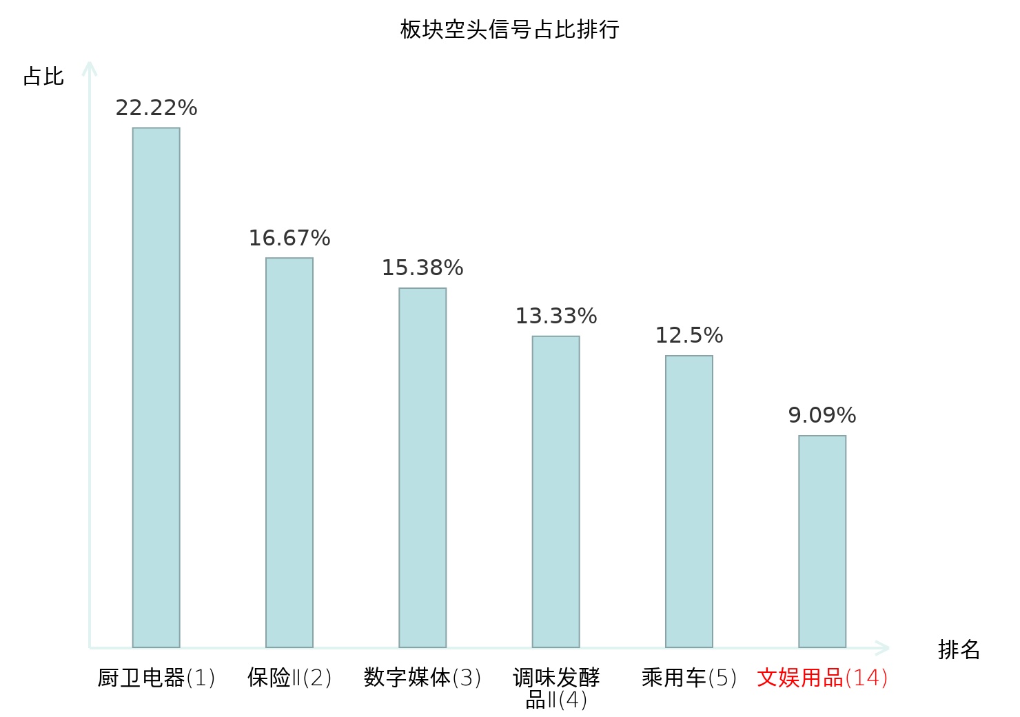 全市场所有行业板块中主力空头信号占比排名中,厨卫电器板块位居第一。教育板块名次提升最快,较昨日上升105位。