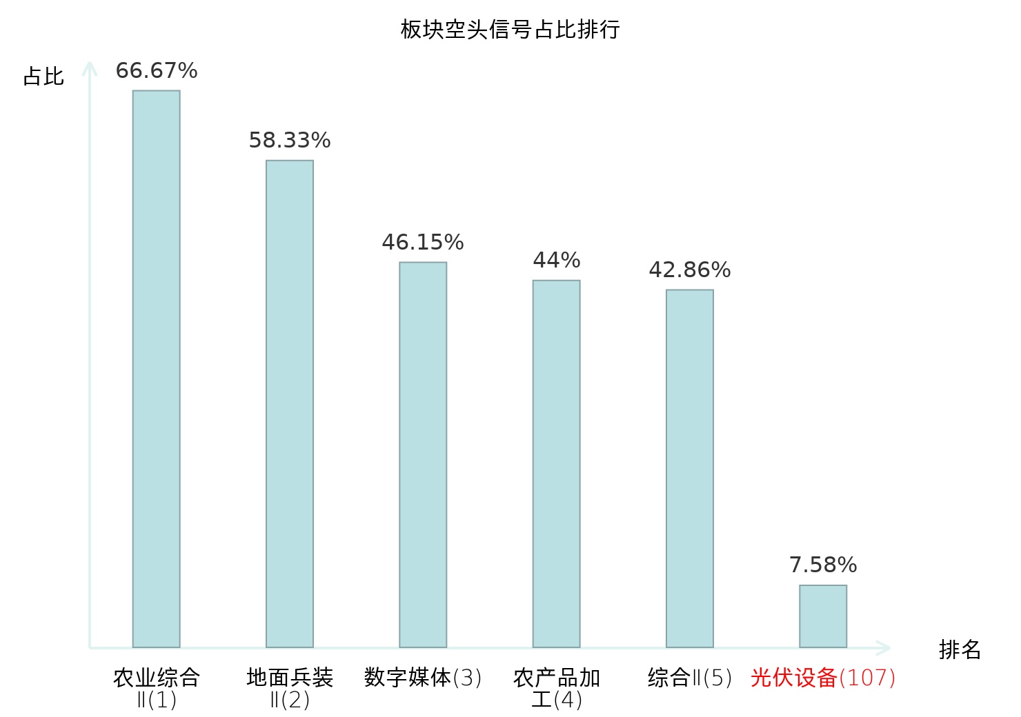 全市场所有行业板块中主力空头信号占比排名中,农业综合Ⅱ板块位居第一。医药商业板块名次提升最快,较昨日上升121位。