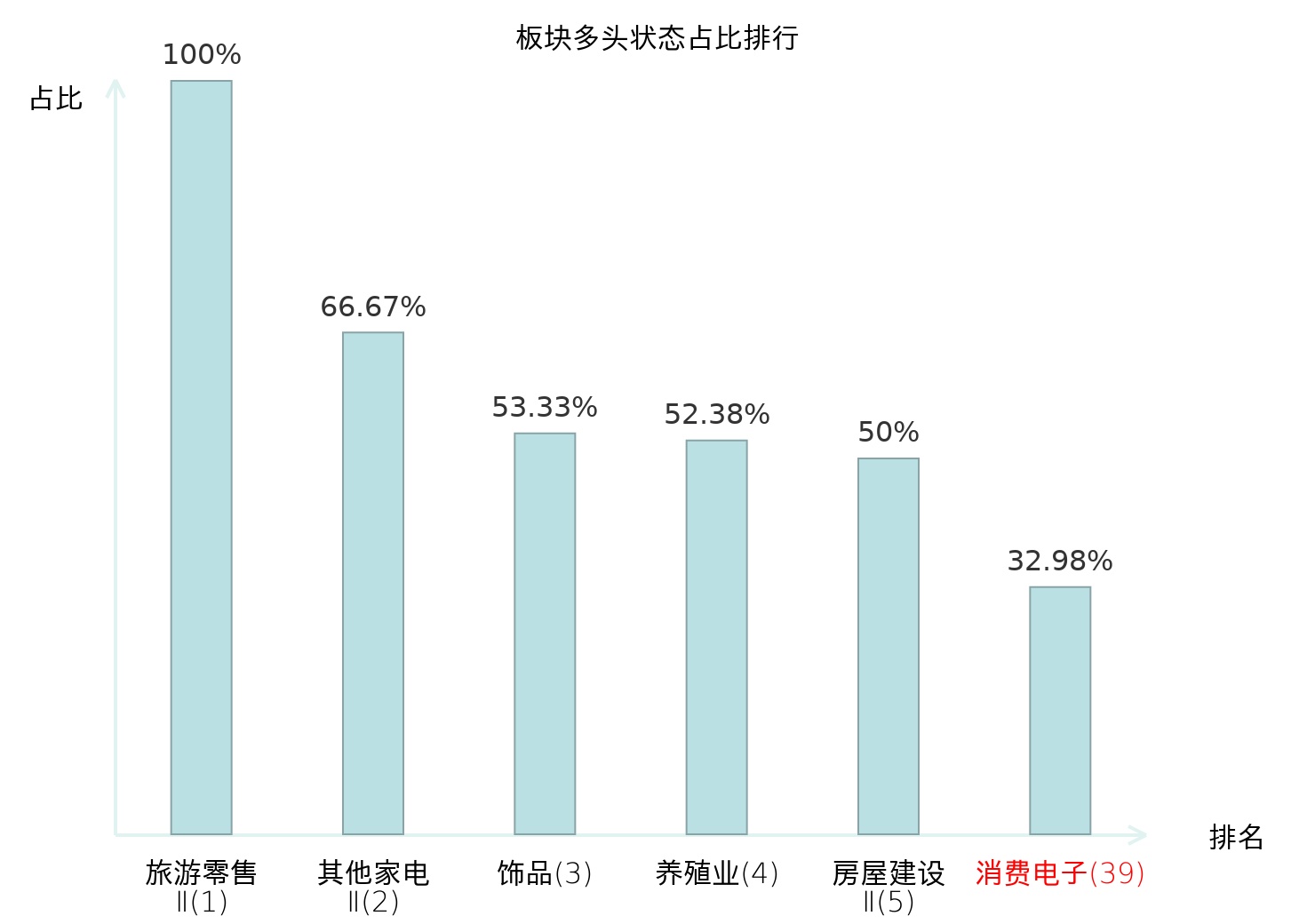 全市场所有行业板块中主力多头状态占比排名中,旅游零售Ⅱ板块位居第一。体育Ⅱ板块名次提升最快,较昨日上升93位。