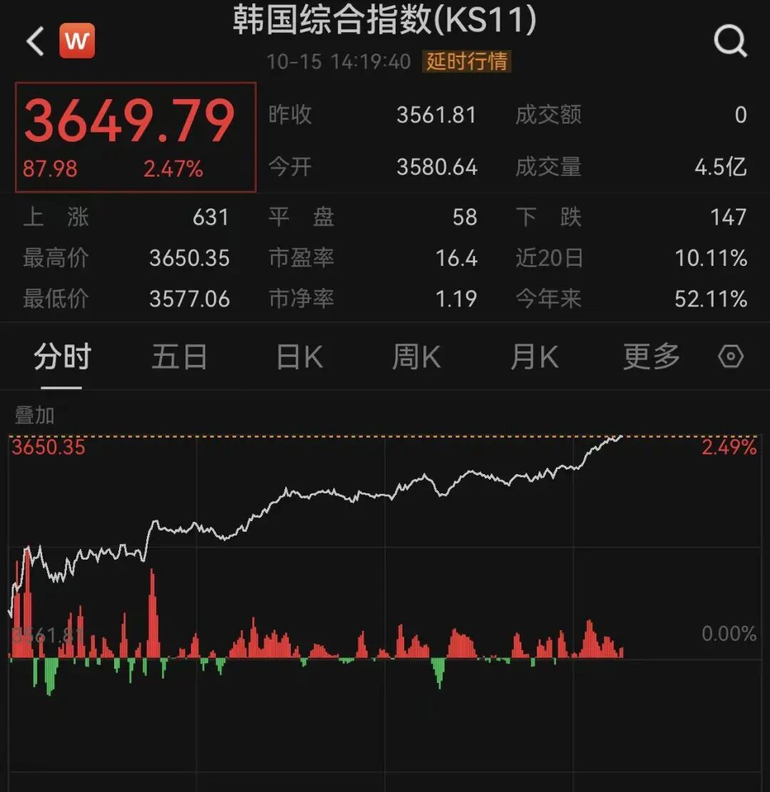 不但黄金市场爆发,亚太市场方面,经历昨日调整之后,各国股指纷纷反弹,其中,日经225指数涨逾1.9%,韩国综合指数涨逾2.4%。