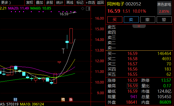 自8月11日以来的6个交易日,同洲电子有5个交易日涨停,区间涨幅近70%,目前其股价已创下多年新高。