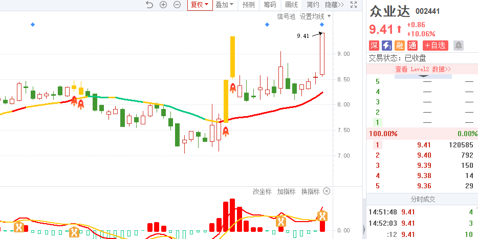 2)众业达-四维操盘-近期出现火箭信号且底部量柱由绿转红