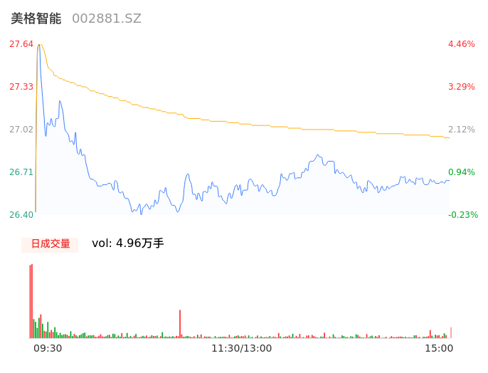 09月25日,美格智能收报26.65,股价涨幅0.72%,成交金额1.34亿元,换手率2.69%。