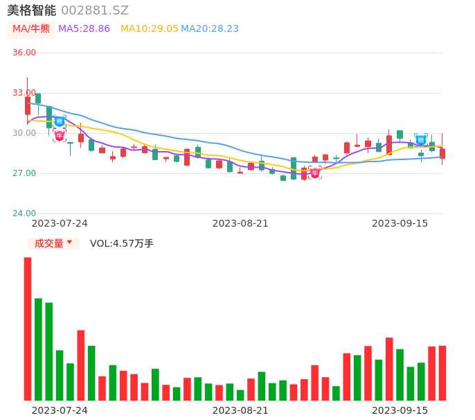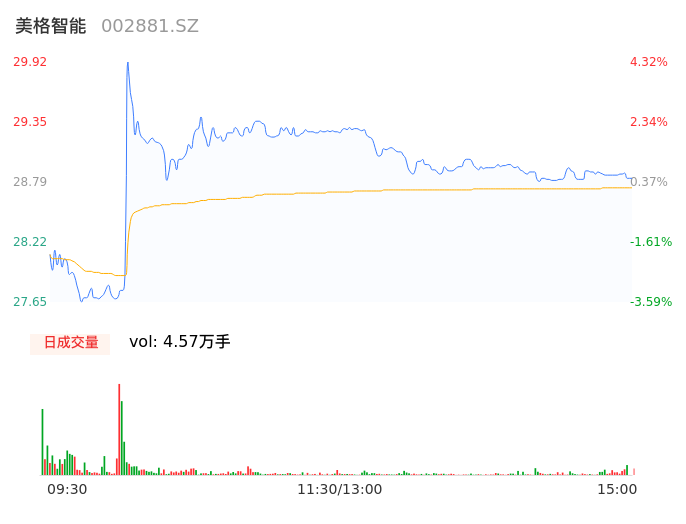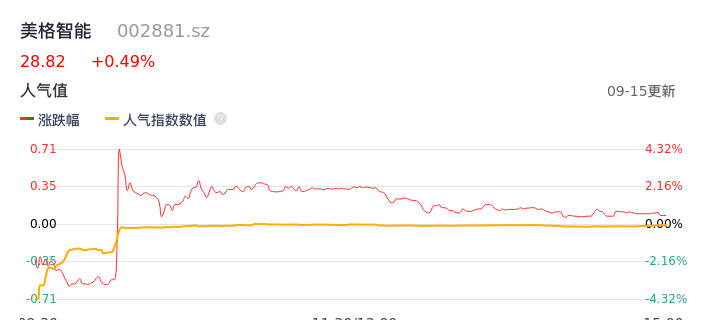 09月15日,美格智能收报28.82,股价涨幅0.49%,成交金额1.31亿元,换手率2.80%。