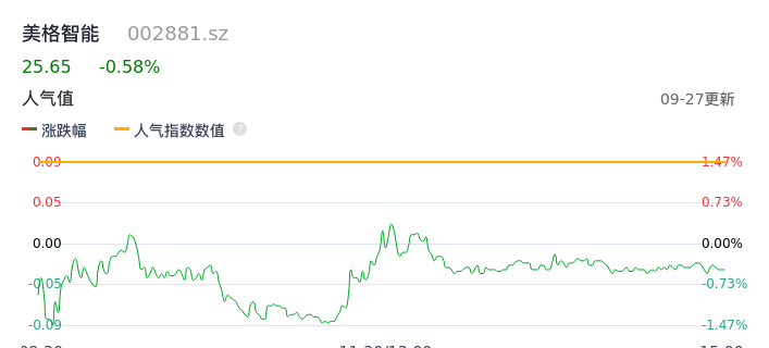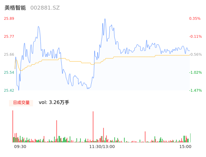 09月27日,美格智能收报25.65,股价涨幅-0.58%,成交金额8365.75万元,换手率1.77%。