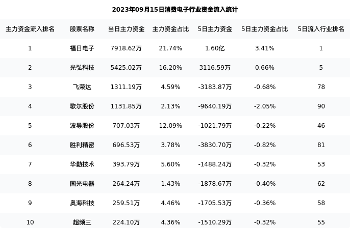 从主力资金流向来看,消费电子行业今日主力资金流入32.75亿元,在所有申万二级行业中排名:39/131。