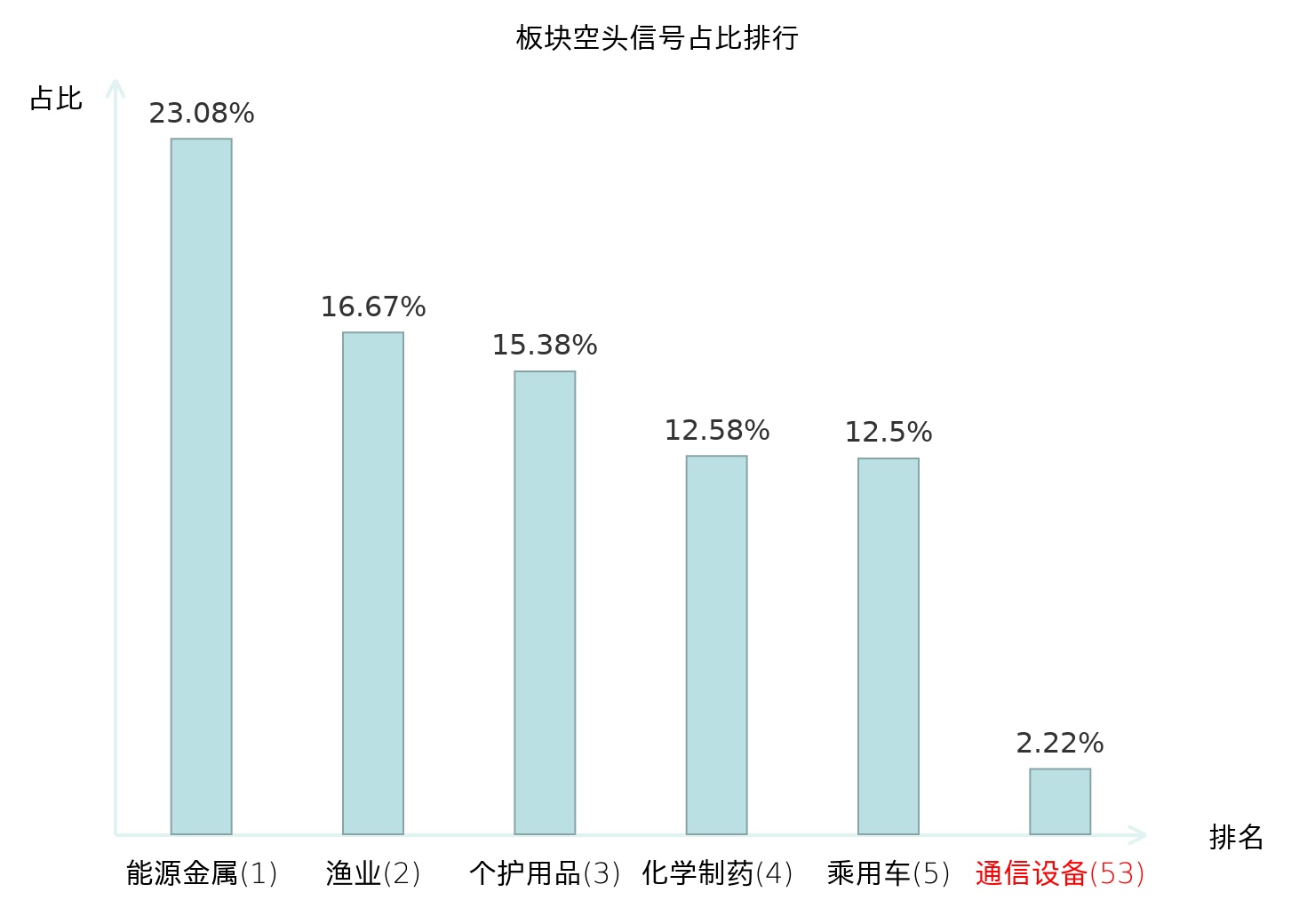 全市场所有行业板块中主力空头信号占比排名中,能源金属板块位居第一。小金属板块名次提升最快,较昨日上升105位。