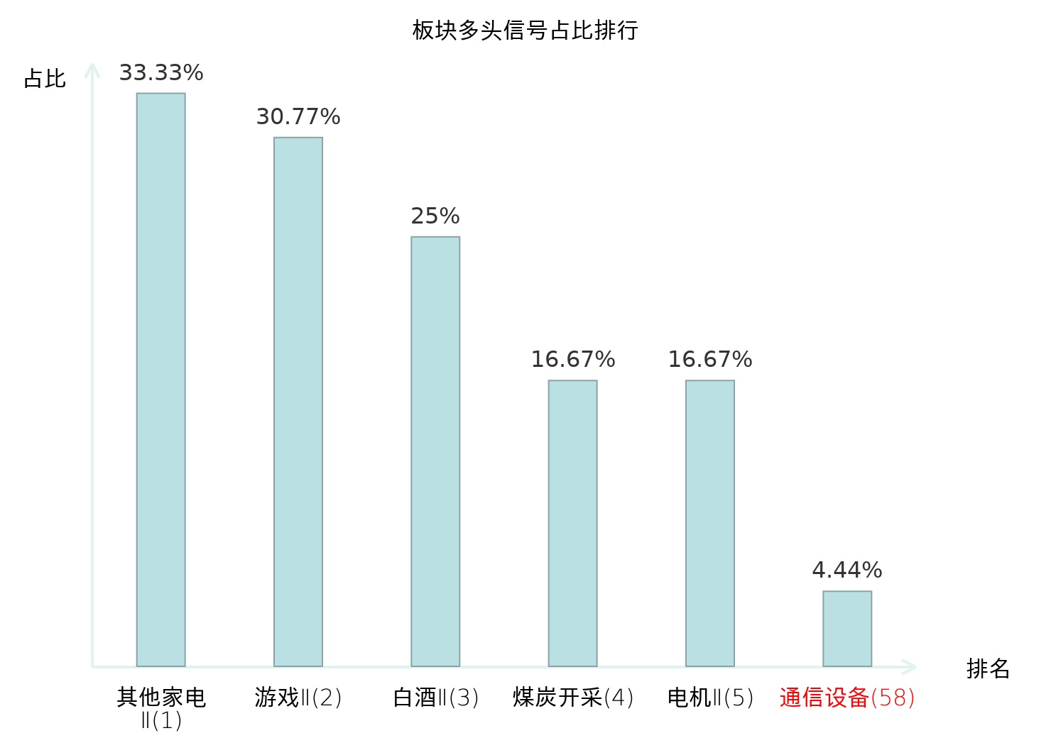 全市场所有行业板块中主力多头信号占比排名中,其他家电Ⅱ板块位居第一。其他家电Ⅱ板块名次提升最快,较昨日上升128位。