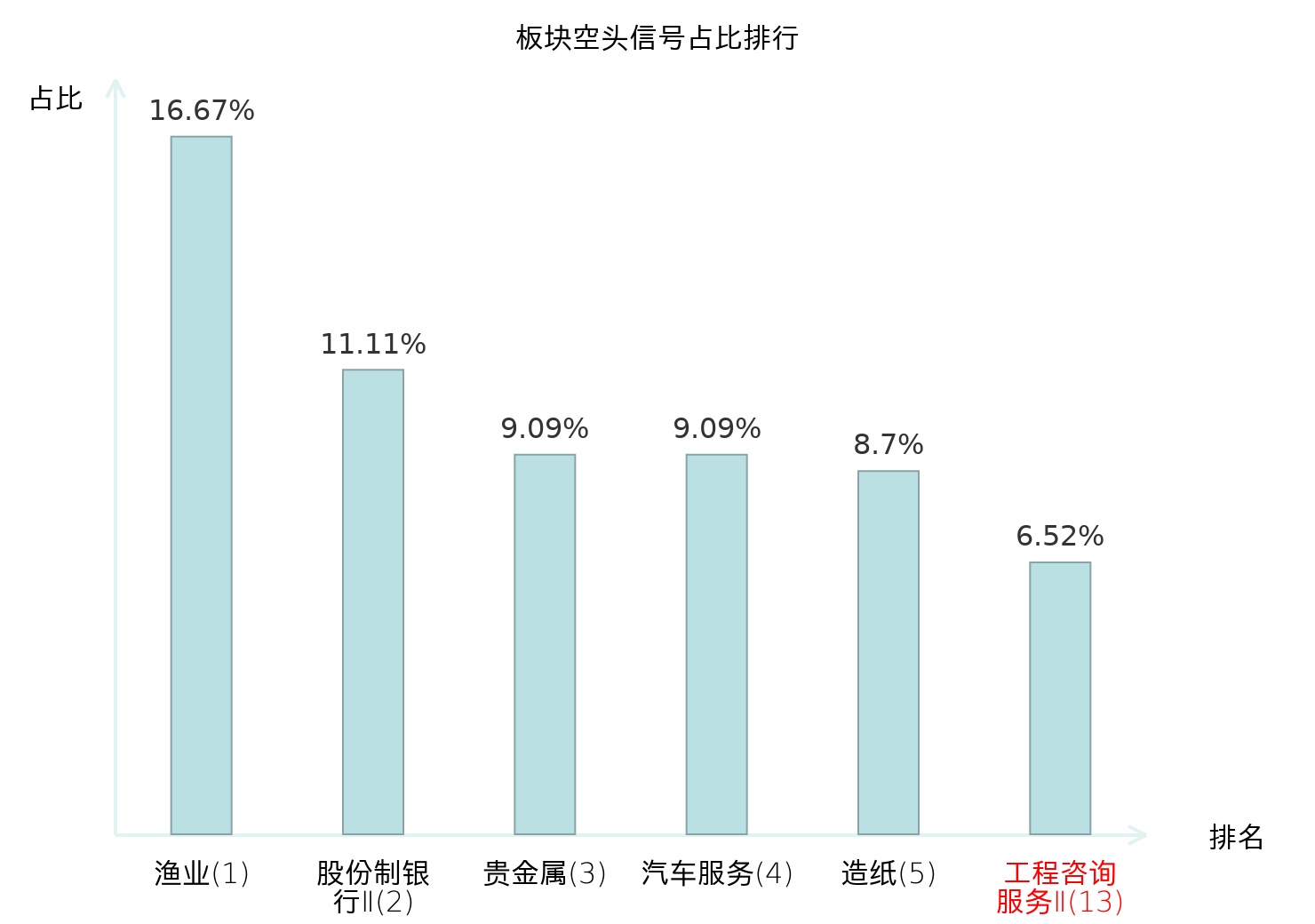 从主力宝信号数据分析,中设股份所属的工程咨询服务Ⅱ板块中共有3只股票发出主力空头信号,主力空头信号占比在全行业中排名第13位,较昨日上升18位。排名的提升表明主力对这一板块的卖出意愿增强。全市场所有行业板块中,渔业板块的主力空头信号占比最高,位居第一。电机Ⅱ板块名次提升最快,较昨日上升113位。这些变动揭示了不同行业间主力资金的卖出偏好变化,为投资者提供了观察市场动向的重要参考。