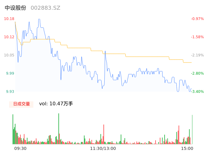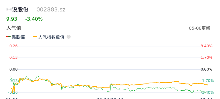 05月08日,中设股份收报9.93,股价涨幅-3.40%,成交金额1.05亿元,换手率7.73%。