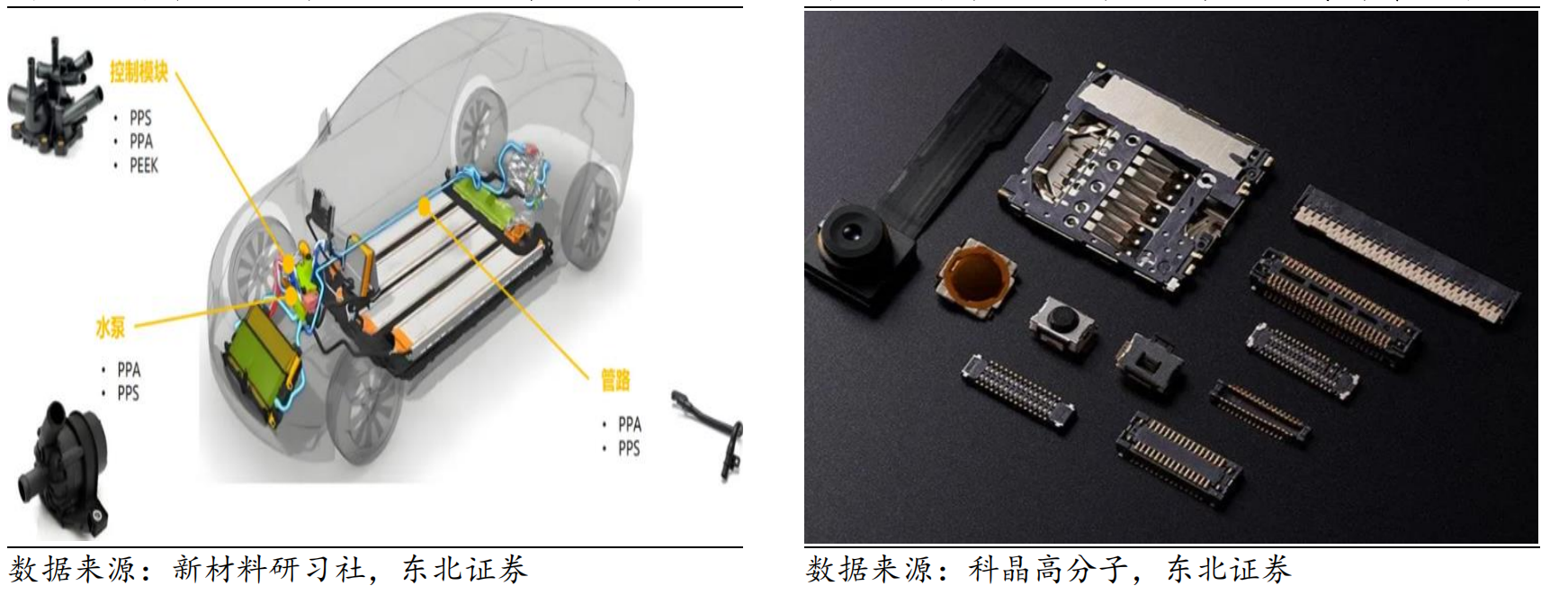 图表5:特种工程塑料用于新能源汽车示意图(左)特种工程塑料用于精密器械零件样品图(右)