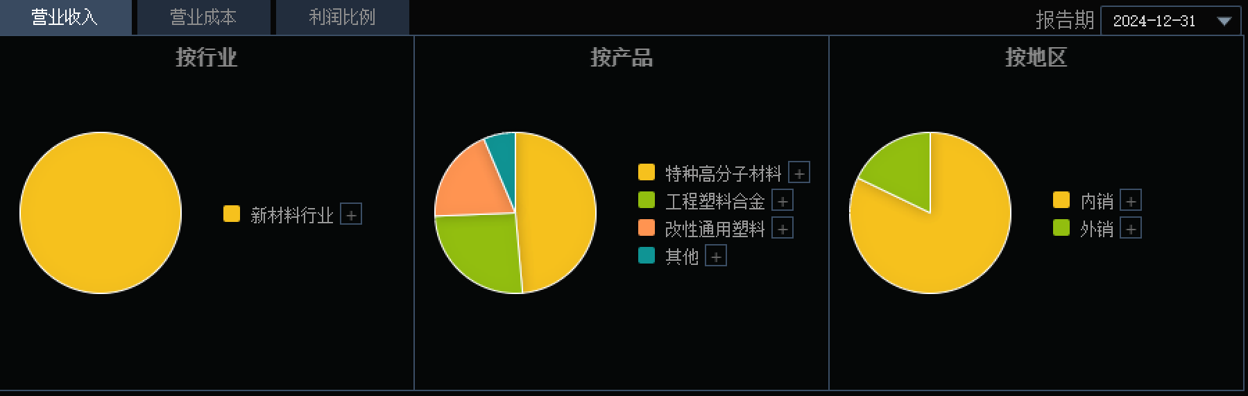 B)产品布局不断丰富,公司营收稳健增长;特种高分子材料是公司最核心的业绩来源;长期来看,公司整体毛利率相对稳定,保持在20%左右;高度重视研发,研发费用率持续增长。