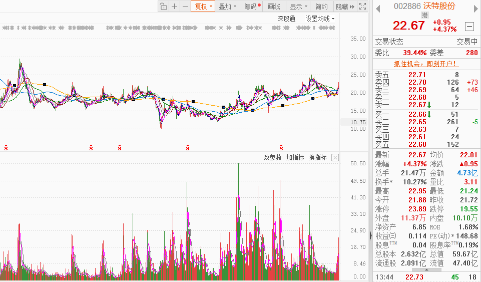 1年多股价随“机器人、铜缆高速连接、航空航天”等题材的轮番炒作而顺势上升(优于大市,阶段性底部逐步抬高,股价仍处于低估区间,市值仅100亿不到,十大流通股东中有众多外资、公私募基金的身影,深受主力或游资喜爱易炒作;12月中旬以来,股价企稳反弹重拾升势,股价站稳各周期均线之上且MACD向上靠拢,量价齐升,有望加速上攻。点击此处立即解锁“启动点“!
