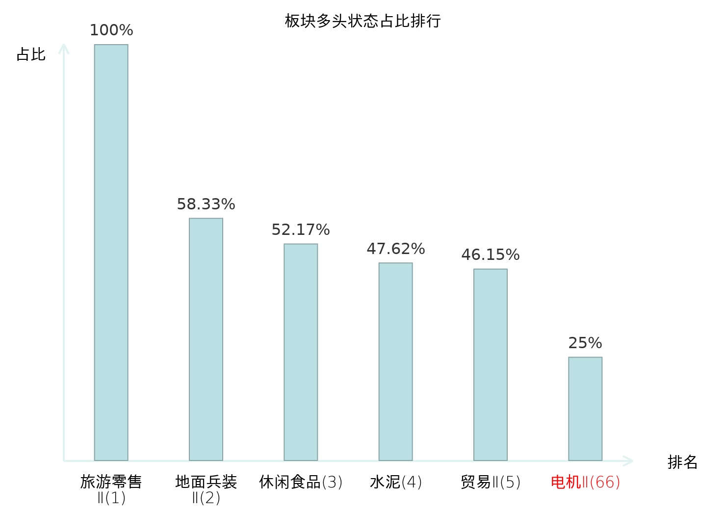 全市场所有行业板块中主力多头状态占比排名中,旅游零售Ⅱ板块位居第一。焦炭Ⅱ板块名次提升最快,较昨日上升82位。