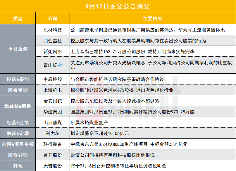 电子树脂产品已供应到英伟达、华为等主流服务器体系 200亿PCB概念股发布异动公告|盘后公告集锦