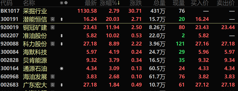 2月28日早盘,油服工程板块开盘后持续上涨,截至收盘,潜能恒信、准油股份涨停,科力股份、贝肯能源、通源石油、海油发展涨幅超2%。