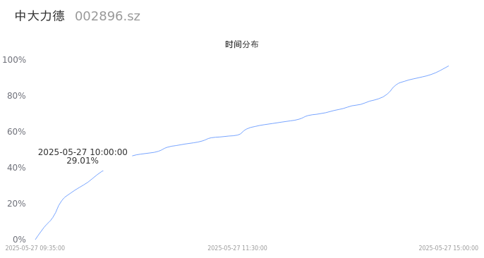002896中大力德2025年05月27日成交8.24万手,成交金额6.35亿,相较昨日放量1.05万手,换手率5.45%,成交清淡。