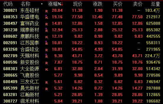 有机硅概念盘中大幅拉升,截至收盘,东岳硅材20%涨停,江苏国泰、合盛硅业亦涨停,新安股份、大全能源涨约7%。