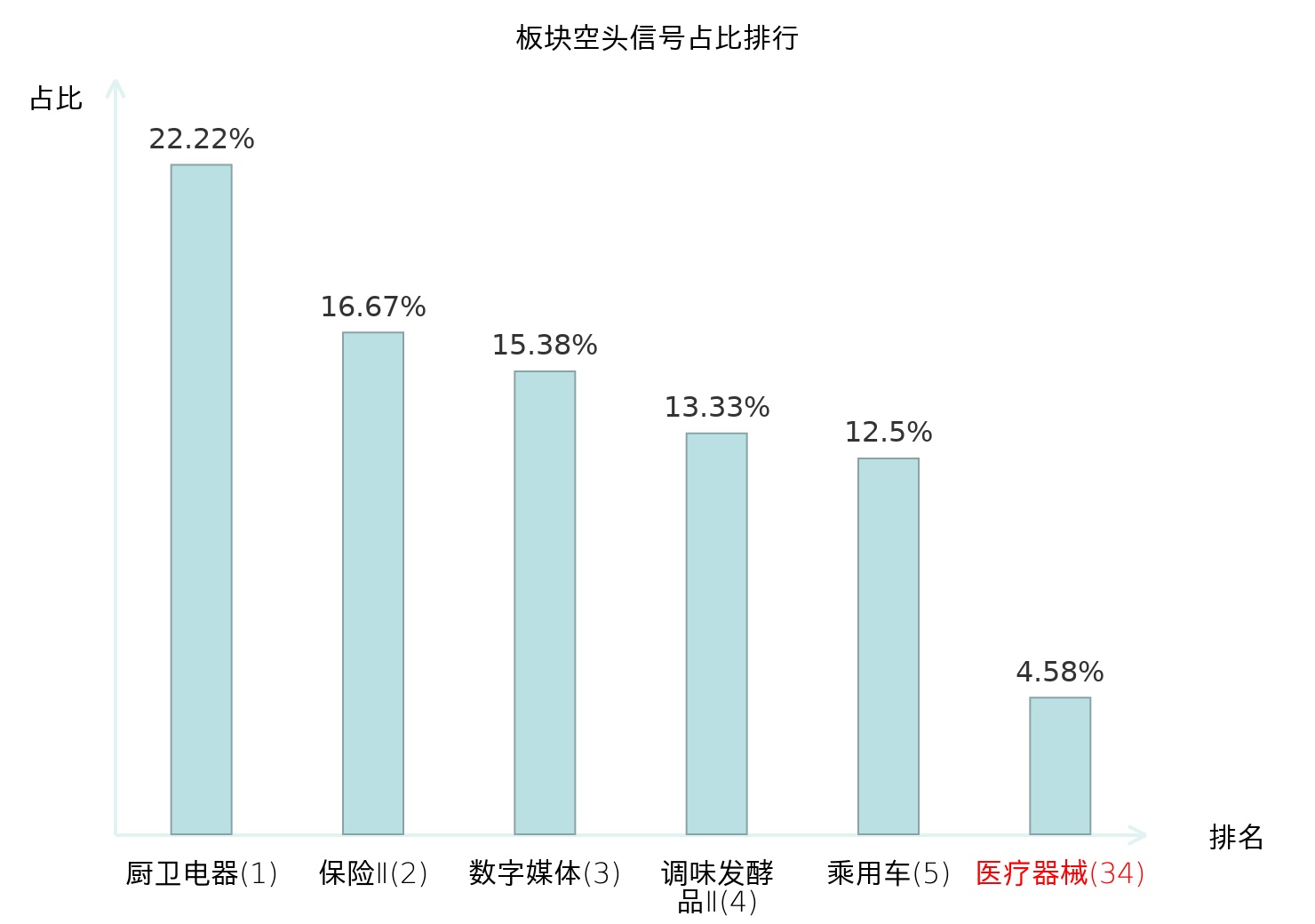 全市场所有行业板块中主力空头信号占比排名中,厨卫电器板块位居第一。教育板块名次提升最快,较昨日上升105位。