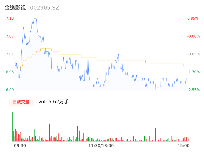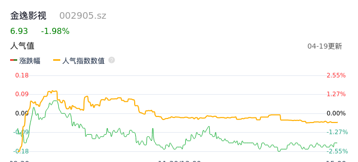 04月19日,金逸影视收报6.93,股价涨幅-1.98%,成交金额3922.01万元,换手率1.61%。