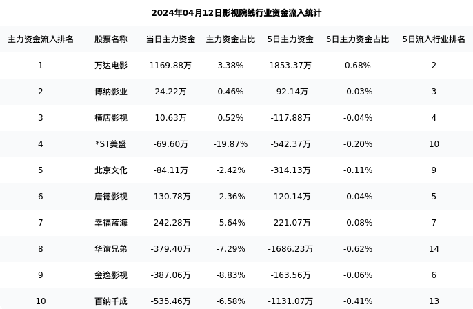 从主力资金流向来看,影视院线行业今日主力资金流入12.10亿元,在所有申万二级行业中排名:130/131。