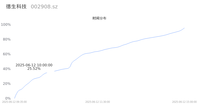 002908德生科技2025年06月12日成交10.04万手,成交金额9437.23万,相较昨日缩量1.35万手,换手率3.12%,成交清淡。