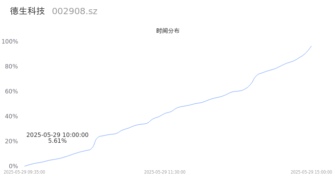 002908德生科技2025年05月29日成交20.95万手,成交金额1.95亿,相较昨日放量13.83万手,换手率6.51%,成交清淡。