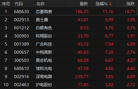 PCB概念股震荡走强 奥士康涨停